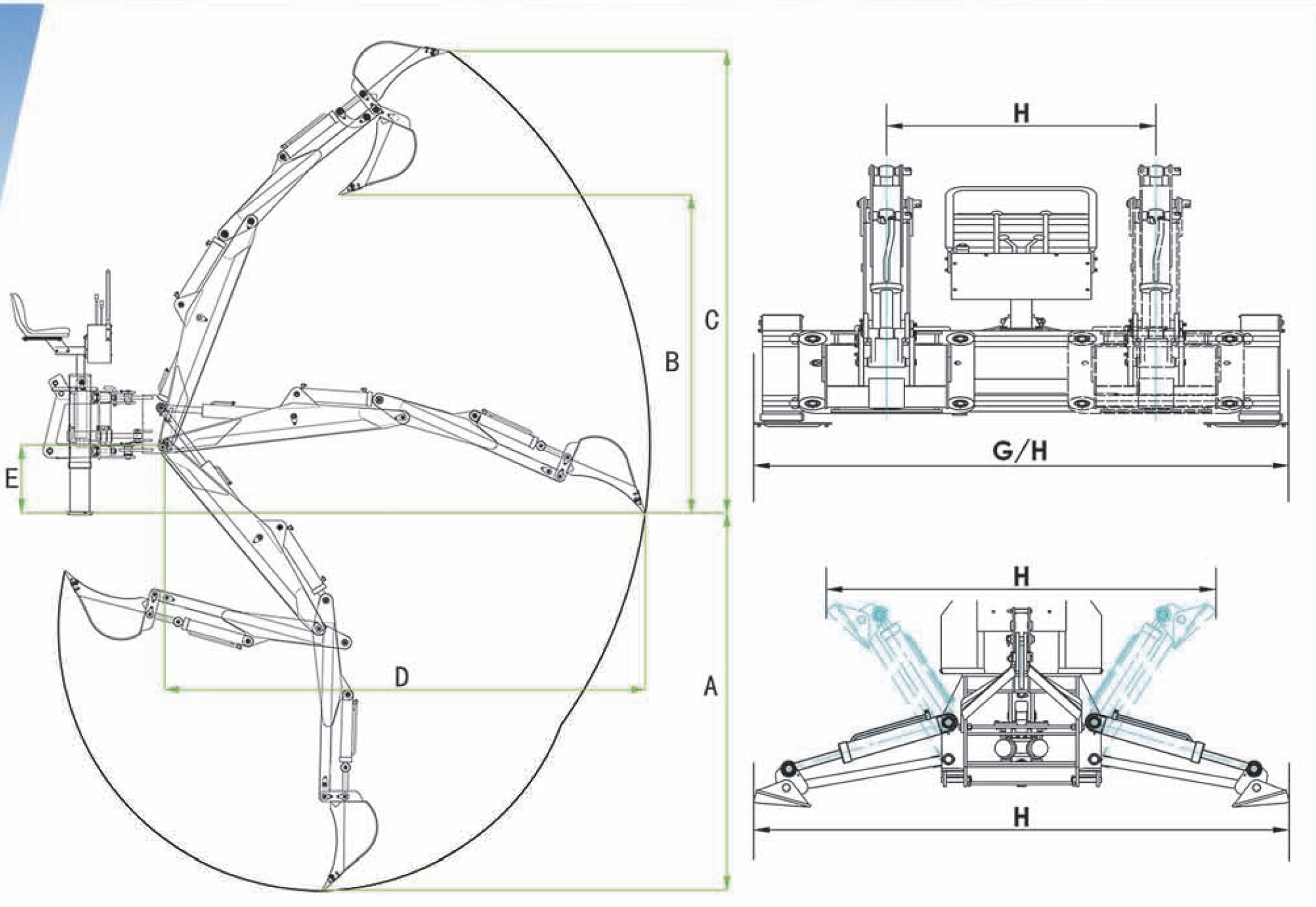 LW Series Backhoe Excavator for tractor is used for ditching in farms and grazing lands, digging pool, cleaning waterways as well as assistant excavating work in construction and building roads, etc.To better accomplish different kinds of work, buckets of different sizes can be selected and mounted on it.