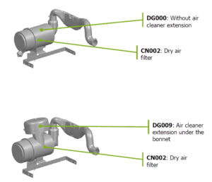 The Air filter (CN002) is available with a standard configuration (DG000) or with pre-filter (DG009) which represents the ideal feature when working in dusty environments.