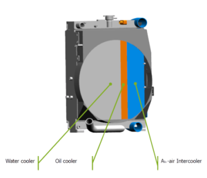 The aluminum water cooler, has light weight and ensure an high heat dissipation efficiency. The cooling system includes also the charge air cooler as well as the oil cooler.