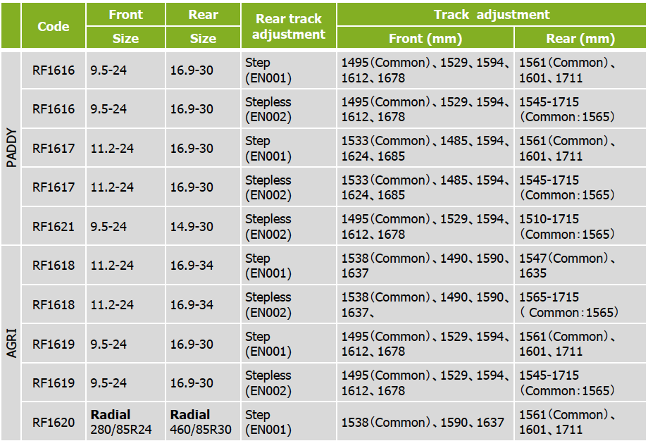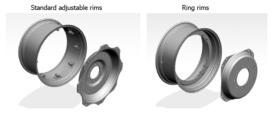 We provide two kinds of rims, one is the standard adjustable rim and the other is the ring rim. Ring rims provide higher driving comfort, less vibration transmission both in field operation and in road transportation.