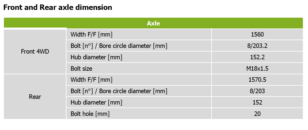 | Max rear tire | 16.9-34 R1 – IR 743 mm |