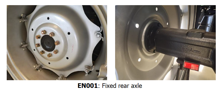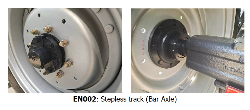 As standard FL90S models are fitted with fixed rear axle. With this solution, rear trackcan be adjusted working on rim adjustments. As option, a bar axle is available. Bar axle system allows stepless rear track adjustment.