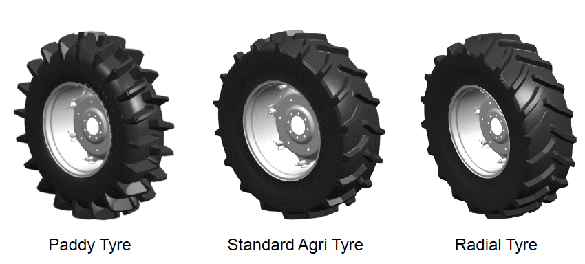 A wide selection of ex-works tyres are available. From factory, FL90S models can beequipped with standard agricultural tyres, radial tyres (Trelleborg branded) or Hi-Lug “Paddy” tyres specifically designed for wet rice-field applications.