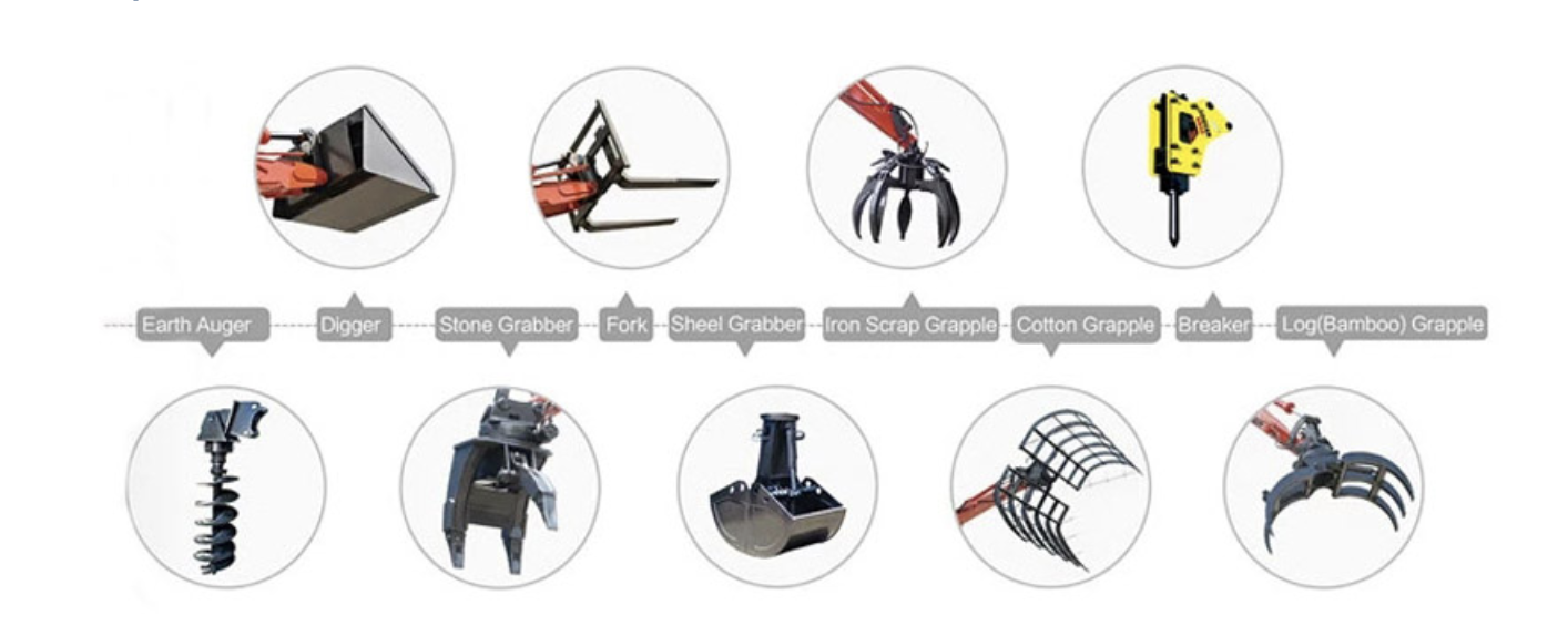JingGong wheeled Excavators could equip different attachments on the one machine for multifunctional uses, and also have the ability to design and custom make kinds of agricultural machinery based on special requirements.